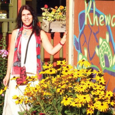 Nathalie Coutu wurde auf einem Bauernhof mit über 800 Schlittenhunden in der Provinz Quebec geboren. Ihre Wurzeln reichen zu den Mi’kmaq. Als junge Frau fand sie durch die Lehren eines indigenen Ältesten bewusst zu ihrem Erbe zurück. Heute schafft sie Brücken zwischen Kulturen und gründete KHEWA, einer Galerie-Boutique. Hier verkauft Nathalie ausschließlich in Kanada gefertigte Kunstwerke, Textilien, Schmuckstücke und sogenannte „tragbare Kunst“ aus ihrer eigenen Collection.